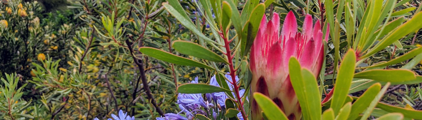 Famous plants you will find in the garden are proteas, flowering between November and April.