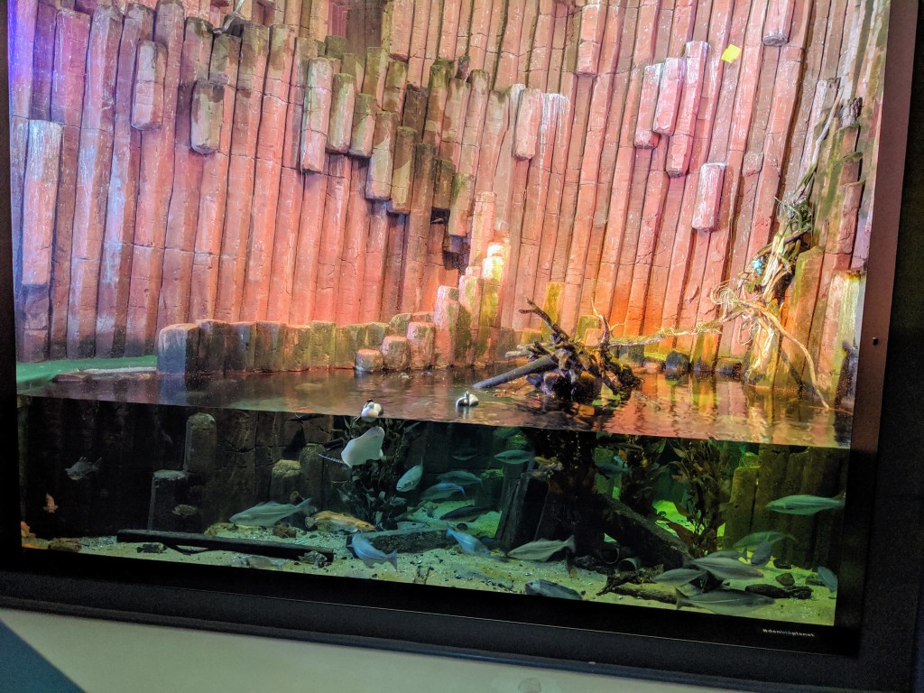The display had a cliff face of Basalt Columns, similar to the famous Giant’s Causeway in Northern Ireland. Birds and fish of the region could be seen in the tank. Unfortunately it looked like the puffins were roosting at the top of the columns out of view and I couldn’t see them!