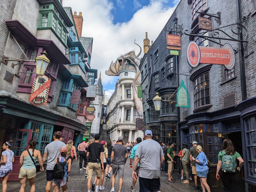 My most memorable experience at Universal Studios was the Harry Potter world in Diagon Alley that was created. Having lived through the Harry Potter hype when I was a teenager when each new book or movie being released was an eagerly anticipated event, experiencing how Universal Studios made the Harry Potter world came to life was the best part for me. Seeing the Knight Bus, Grimmauld Place building and walking through Diagon Alley where you can visit Weasleys Wizarding Wheezes, go to the Leaky Cauldron to pick up a meal and try butterbeer, see the books in Flourish and Blotts and see how the wand chooses the wizard at Olivanders.
