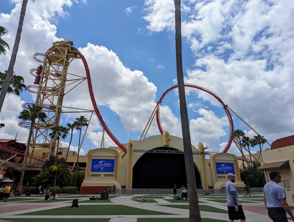 On the thrill ride Hollywood Rip Ride Rockit, you get to choose your own song that will play on the rollercoaster for you while you fly through the air up to 65 mph and climb up a 90 degree angle and drop. The choose your own song made the ride memorable!