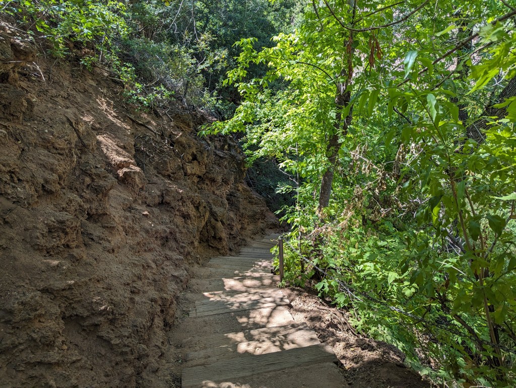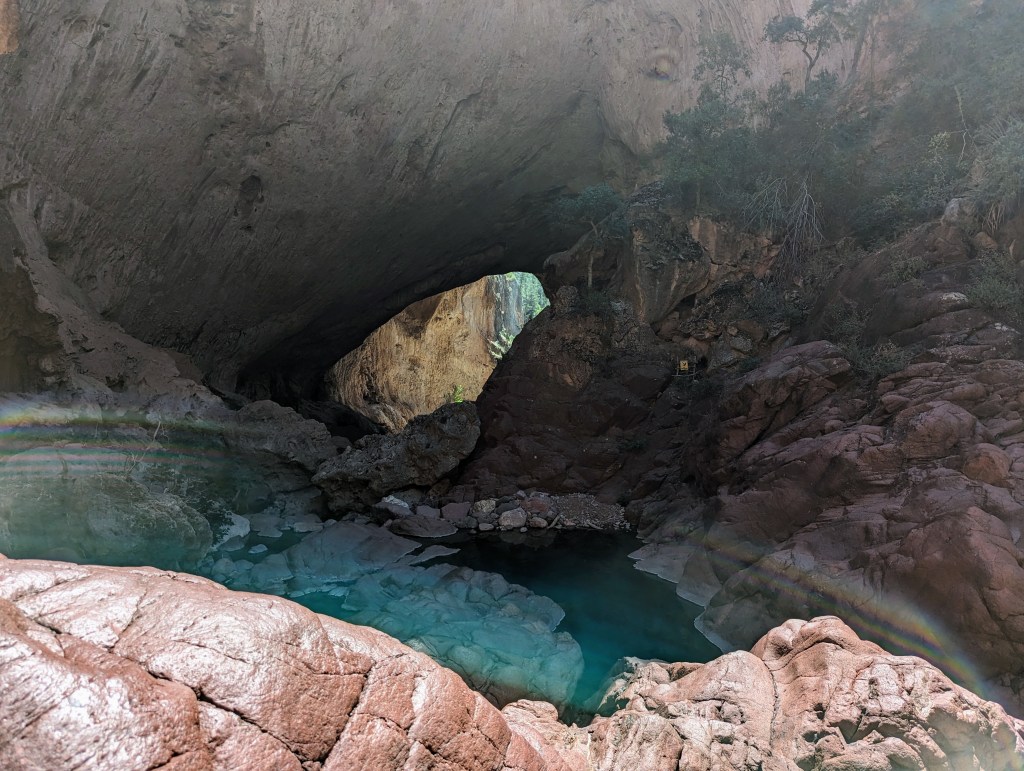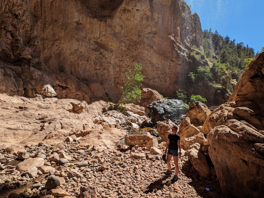 The hike down to the bottom of the bridge was a challenge though! The first section of the trail was easy enough on well maintained paths, but getting down to the ravine there was lots of rock scrambling. For someone with short legs (5 ft 1 short…) there was a lot of what felt like rock climbing in some sections of the trail, as tall as me, to twice my height in one place. The hike was by no means far but it was certainly challenging. I’d recommend having at least an average fitness to handle most hikes, or if you have short legs having someone give you a hand up or down helps a stack. From the bottom of the bridge, the cool water falling down the bridge is seriously refreshing after a hike in the heat! No swimming is allowed though.