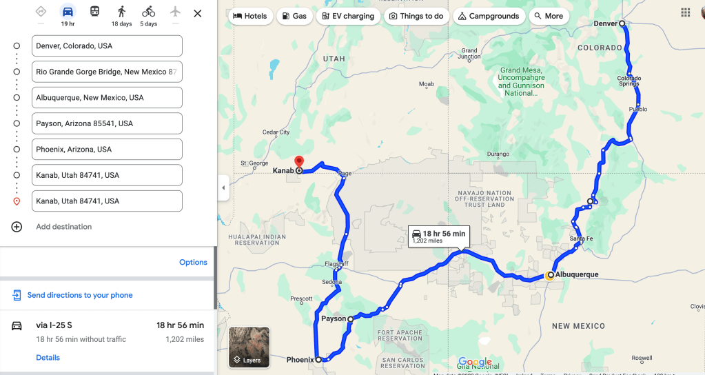 The next leg of the journey was to drive from Phoenix in Arizona to Kanab in Utah – a total of 5 hr 9 min (332 miles) non-stop driving. Everyone in Phoenix recommended if I like nature I should check out Sedona on the way, so that was the main stop along the drive. After seeing Sedona in person, wow – I wish I’d spent more time there! It’s incredible.